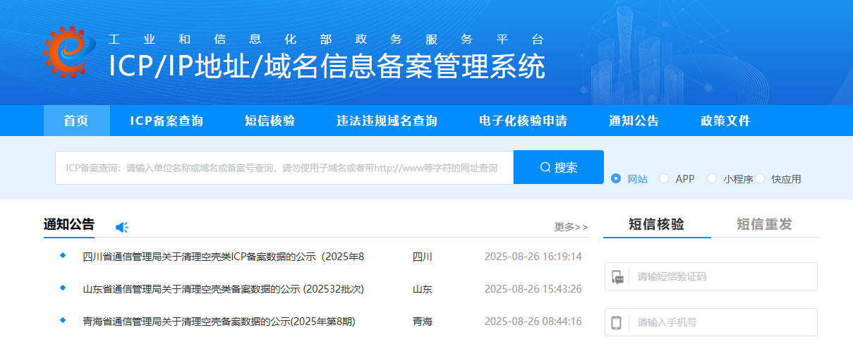 第一步,打开工信部备案查询平台,查询平台网址:https://beian.miit.gov.cn/(打开后看到的网页截图如下)